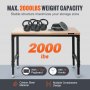VEVOR Regulowany stół warsztatowy, 48" dł. x 24" szer., garażowy stół roboczy z uniwersalnymi kółkami, wysokością 28"-39,5" i udźwigiem 2000 funtów, z gniazdkami elektrycznymi i blatem z twardego drewna z miejscem do przechowywania i podkładkami pod stopy, do biura i domu