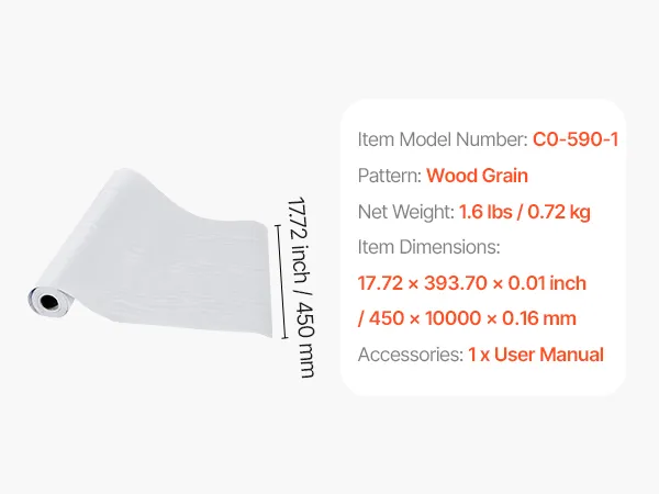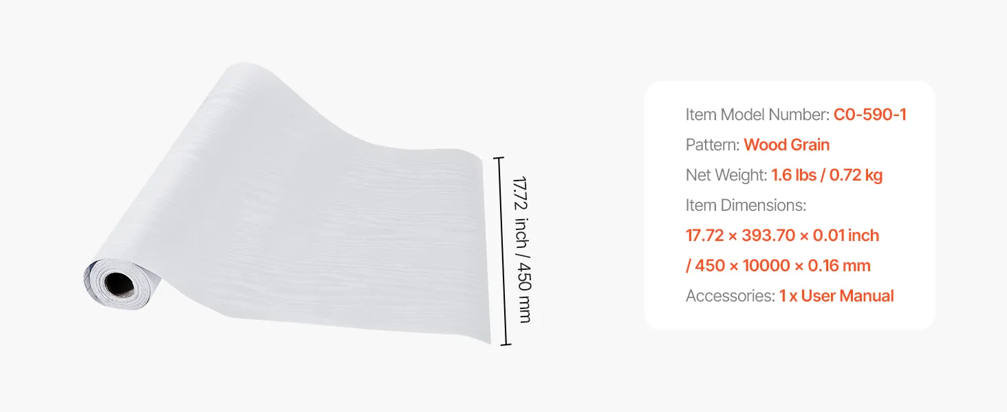 Tapeta samoprzylepna VEVOR, 45 cm x 10 m, tapeta ścienna, folia samoprzylepna o wyglądzie białego drewna, folia meblowa, naklejka na meble, dekoracyjna rolka winylowa do sypialni, kuchni, biura, łazienki, biurka
