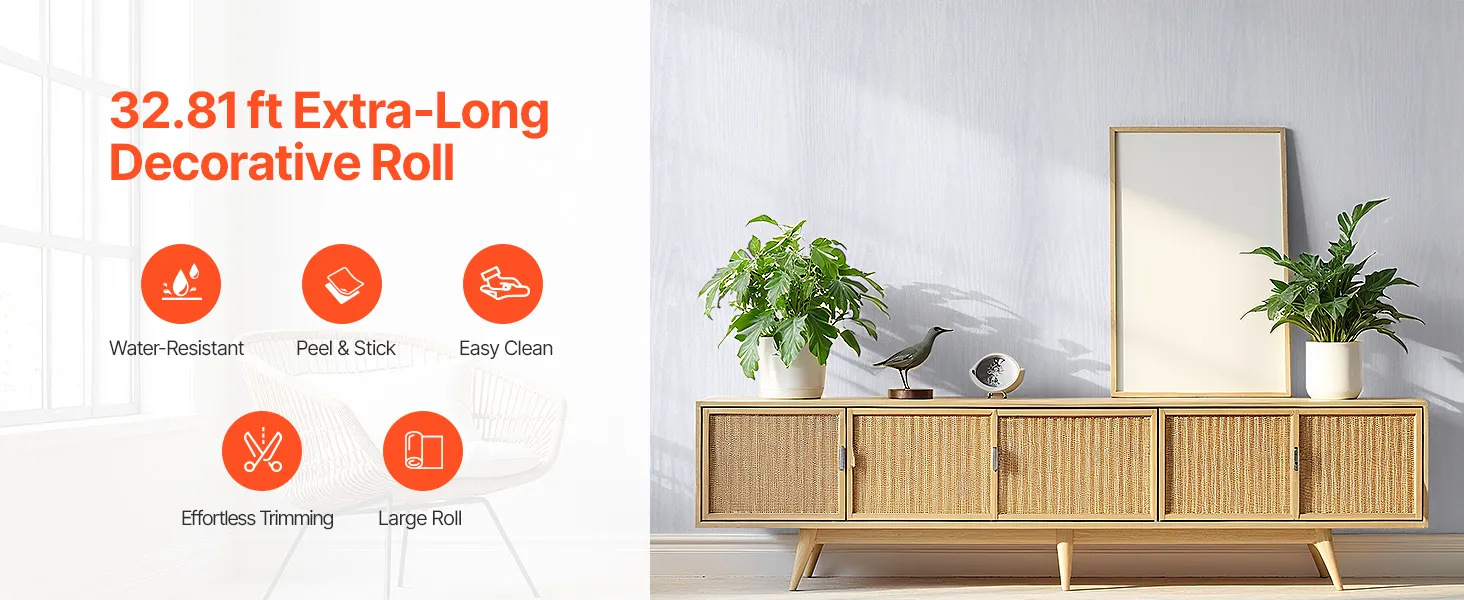 Ta duża rolka samoprzylepnej tapety zachwyca eleganckim wzornictwem, pasuje do różnych stylów wnętrz i pokrywa duże powierzchnie. Dzięki siatce umożliwiającej precyzyjne cięcie, jest wodoodporna i łatwa w czyszczeniu. Idealna do sypialni, kuchni, biur i innych zastosowań.