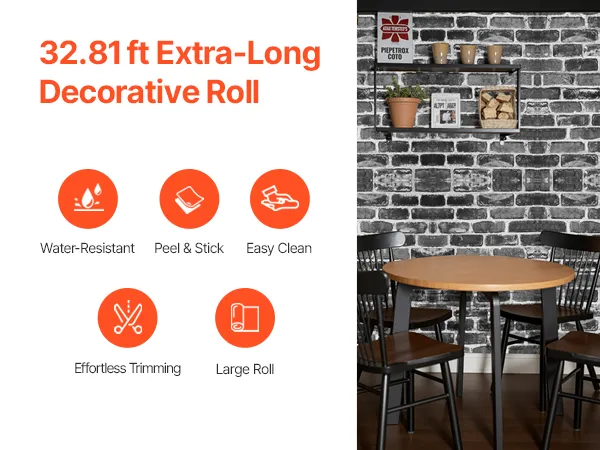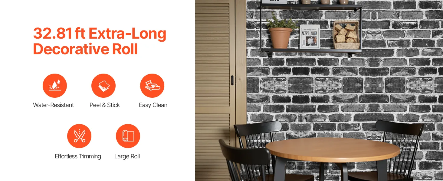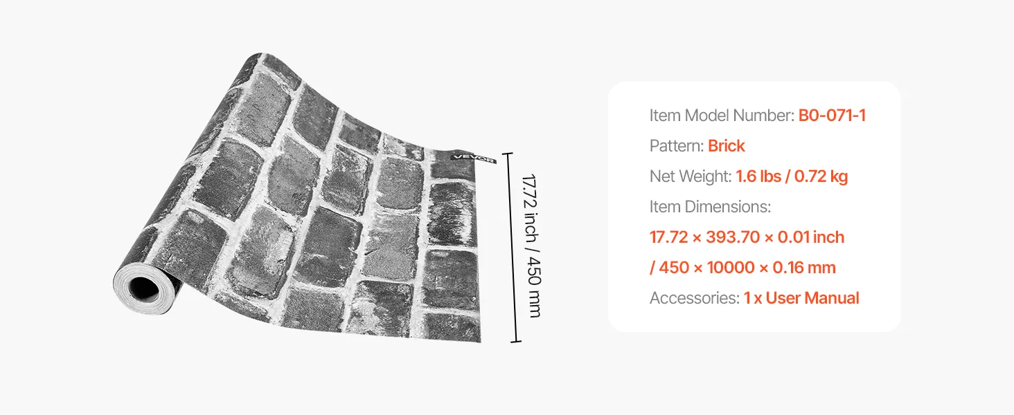 Tapeta samoprzylepna VEVOR, 45 cm x 10 m, tapeta ścienna, folia samoprzylepna z efektem szarej cegły, folia meblowa, naklejka na meble, dekoracyjna rolka winylowa do sypialni, kuchni, biura, łazienki, biurka