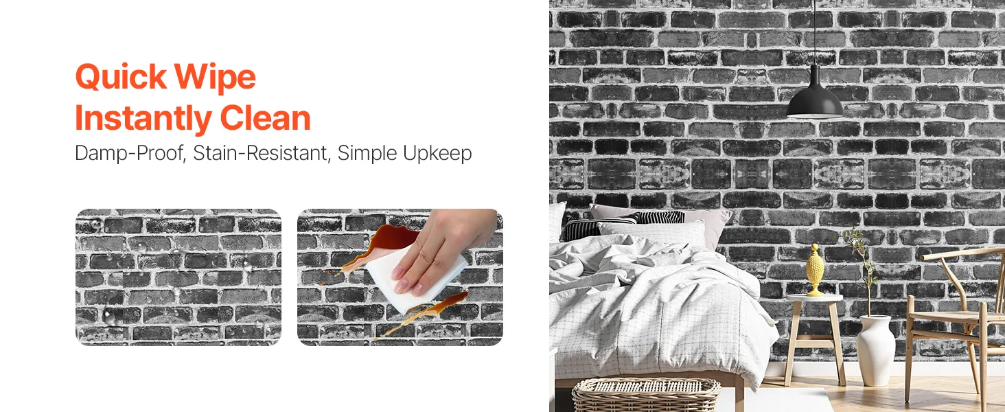 Ta okładzina ścienna, wykonana z wodoodpornych i plamoodpornych materiałów, jest łatwa w czyszczeniu. Idealna do kuchni, pokojów dziecięcych i wynajmowanych nieruchomości, utrzymuje ściany w czystości i świeżości przy minimalnej konserwacji.