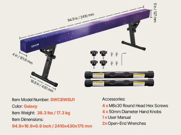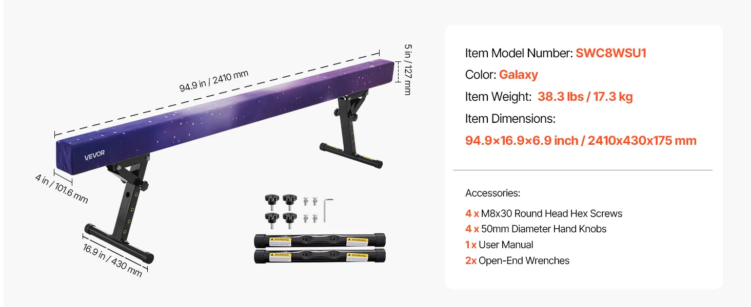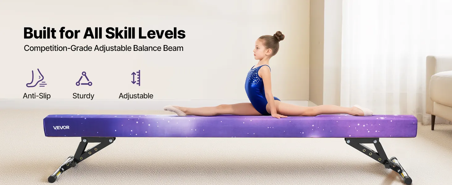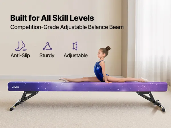 VEVOR Belka gimnastyczna dla dzieci, 241 cm, regulowana wysokość (5 poziomów), udźwig 158,7 kg Belka gimnastyczna Belka gimnastyczna, Belka równoważna, Belka równoważna do siłowni, Galaxy