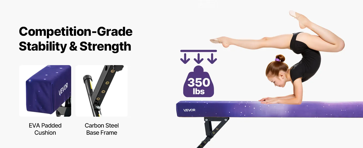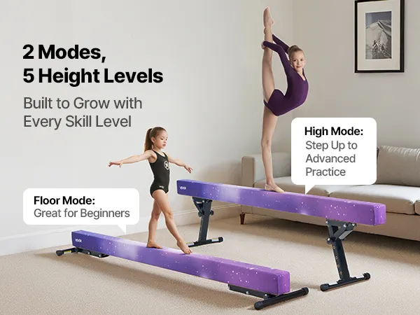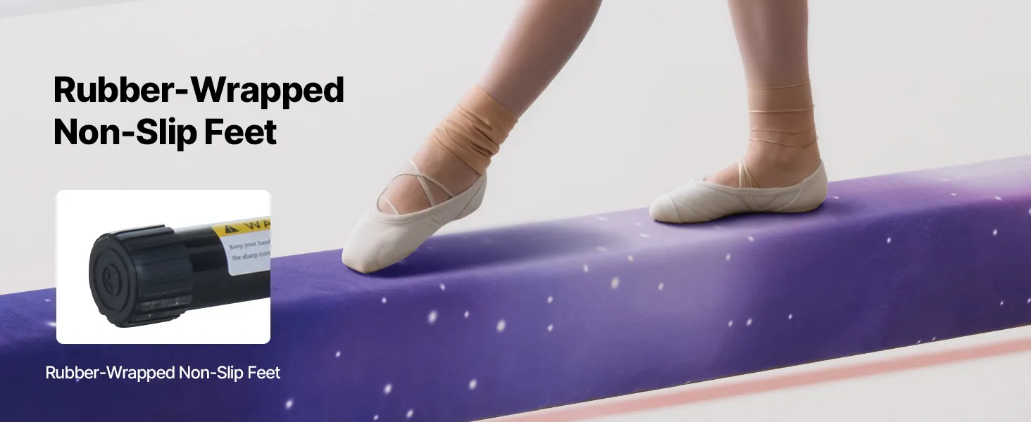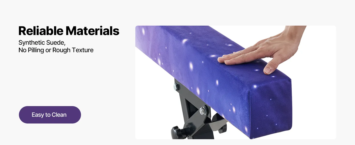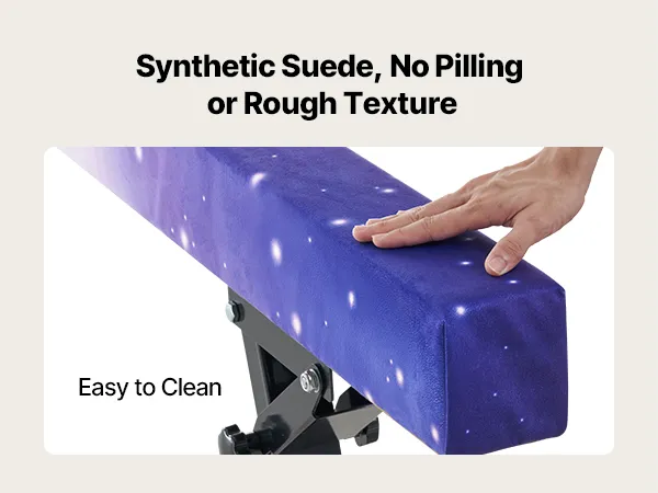 Gotowość do rywalizacji: Belka gimnastyczna ma zaokrąglone krawędzie i wytrzymałą skórę syntetyczną, zapewniając miękką, antypoślizgową powierzchnię z idealną przyczepnością i tarciem. Wygodna i niezawodna dla dzieci, które chcą trenować bez poślizgu.