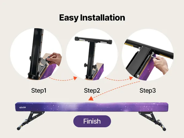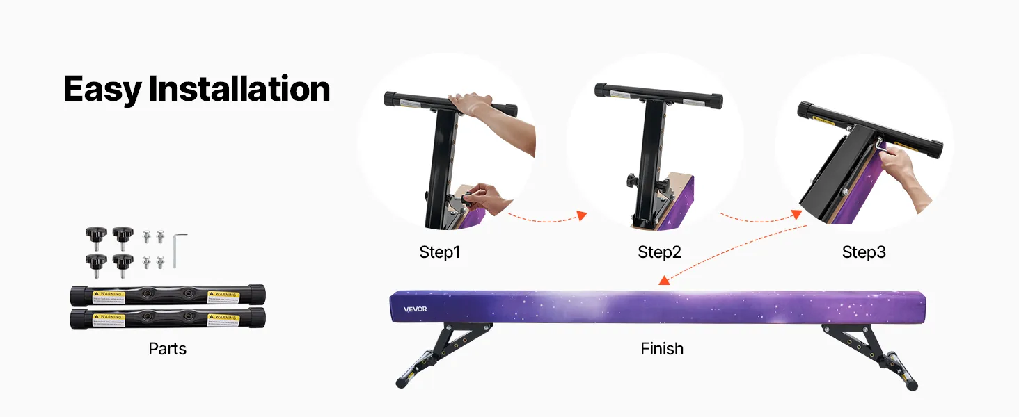 Składane i zajmujące mało miejsca: Wstępnie zmontowane, co pozwala na szybki montaż – wystarczy dopasować do żądanej wysokości i zabezpieczyć. Składane nogi można przechowywać na belce, oszczędzając miejsce, dzięki czemu idealnie nadają się do użytku domowego, klubów gimnastycznych lub zaawansowanych treningów. Świetny prezent dla dzieci i młodzieży.