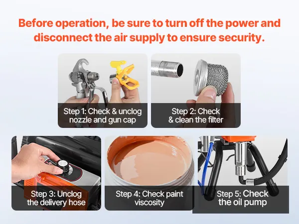 A1: 1. Załóż okulary ochronne, respirator, rękawice i odzież ochronną. 2. Przygotuj farbę: Zawsze dokładnie wymieszaj farbę i przecedź ją, aby usunąć wszelkie cząsteczki, które mogłyby zatkać dyszę.