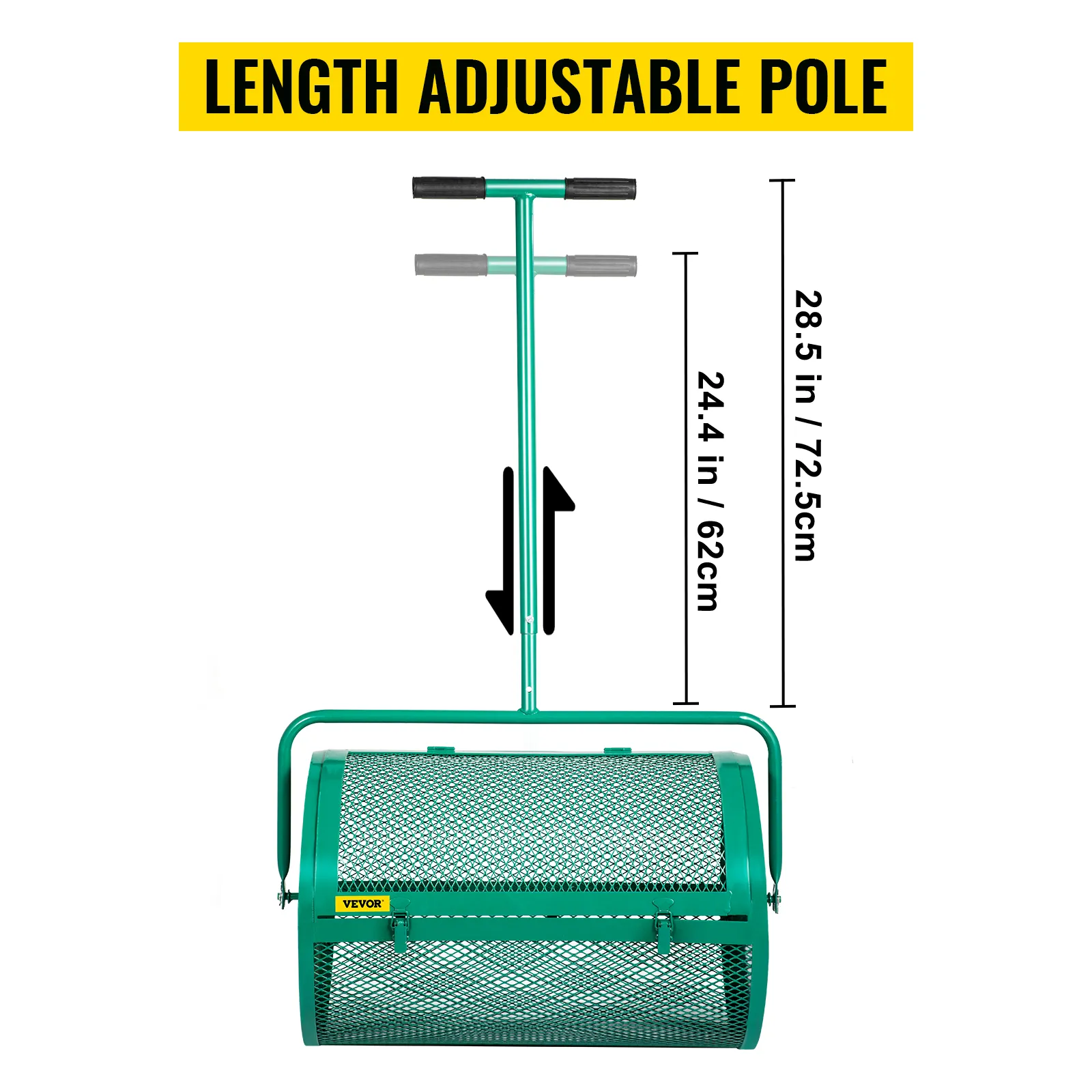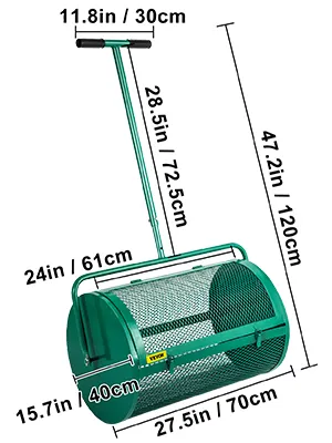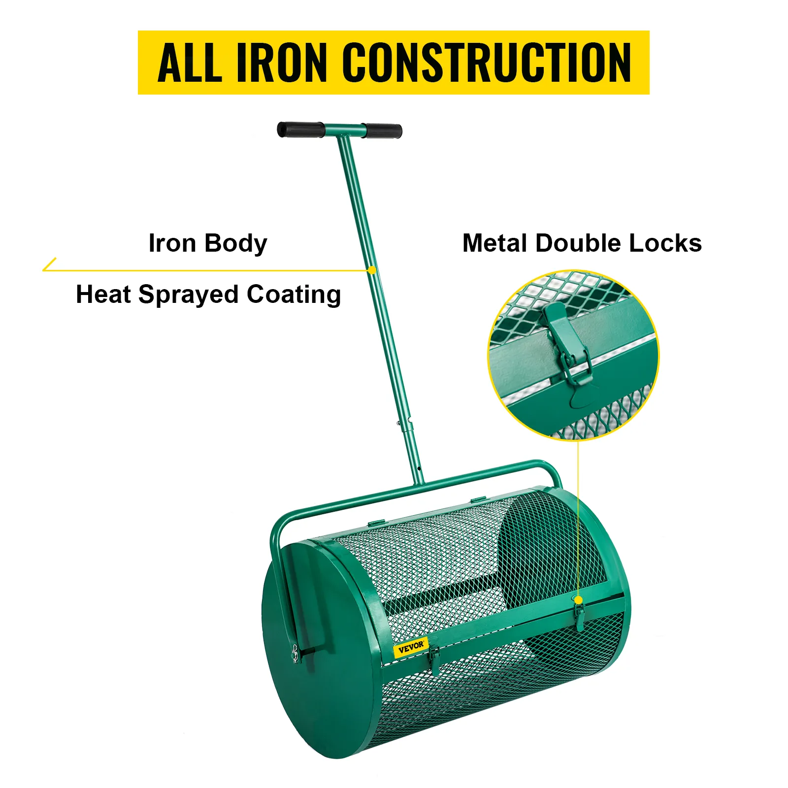 Solidna żelazna rura nie jest łatwo wgnieciona ani zdeformowana. Lakierowane proszkowo wykończenie naszego rozsiewacza gleby zapewnia długą żywotność w każdych warunkach pogodowych, rdzy i korozji. Dwa płaskie zatrzaski są solidne, aby pozostać zamknięte podczas walcowania w celu rozłożenia kompostu.