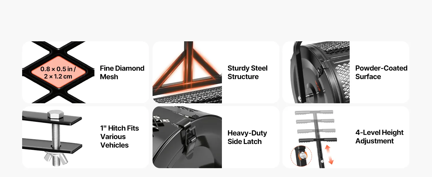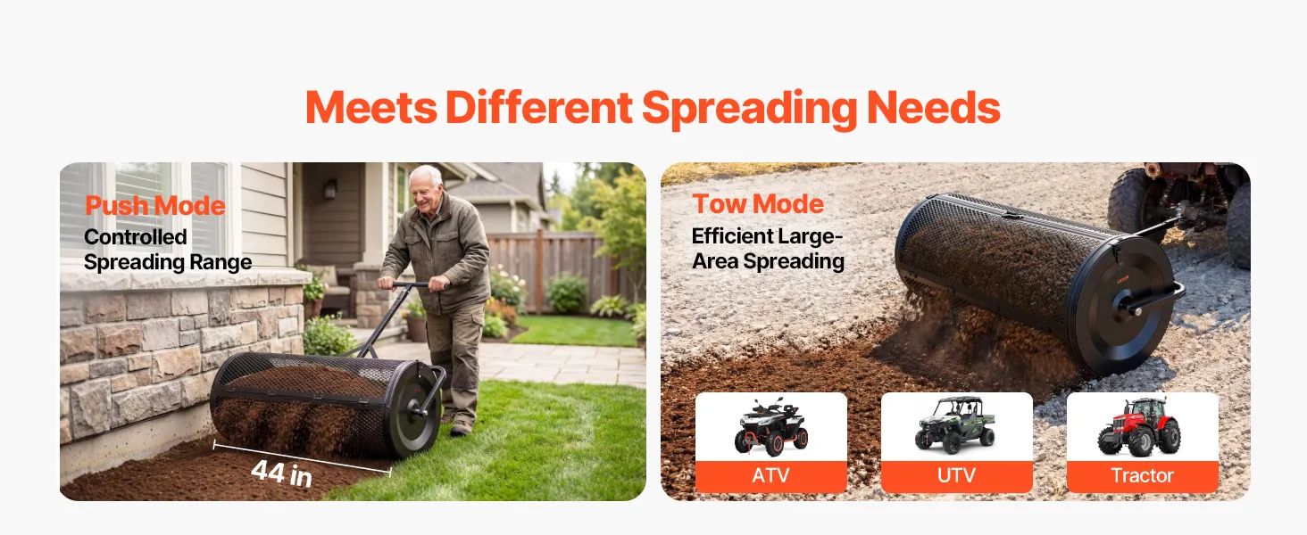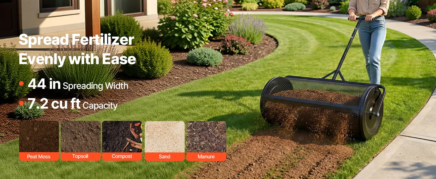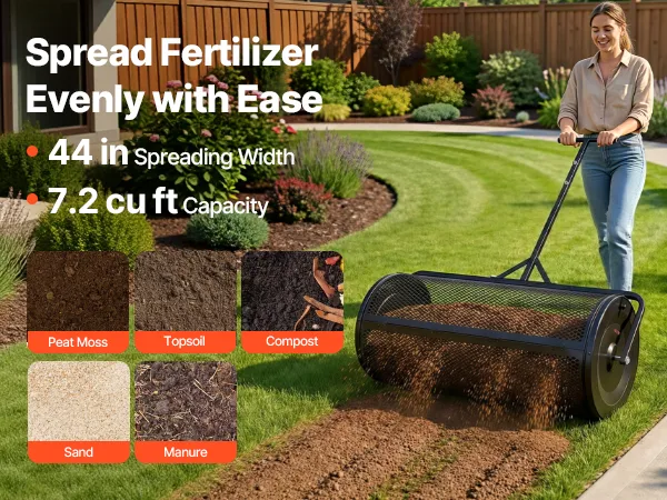 Ten rozsiewacz kompostu mieści do 204 litrów (7,2 stopy sześciennej) materiału, zapewniając efektywną pielęgnację trawnika i ogrodu. Nadaje się do torfu, gleby wierzchniej, kompostu, piasku i obornika na farmach, polach i w ogródkach warzywnych.
