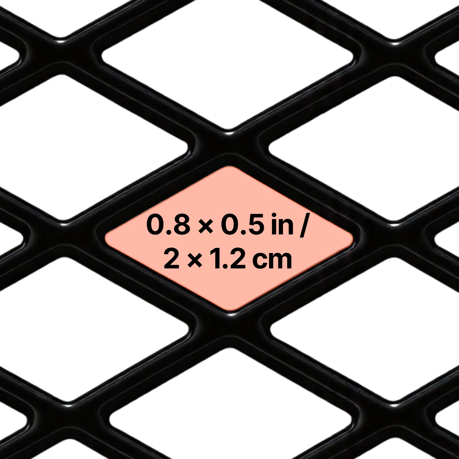 Ten kompostownik rolkowy ma drobną, romboidalną siatkę, która oddziela grudki i zanieczyszczenia od kompostu. Wytrzymała siatka zapewnia bardziej równomierne i gładkie rozprowadzanie.