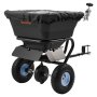 Solidna, odporna na warunki atmosferyczne konstrukcja: Rozsiewacz ciągniony wyposażony jest w malowaną proszkowo stalową ramę oraz zbiornik odporny na promieniowanie UV i uderzenia. Wyposażony w 10-calowe opony pneumatyczne zapewniające optymalne prowadzenie na trawie, żwirze i śniegu – idealny do pracy w każdym terenie.