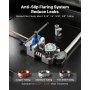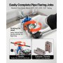 Łatwy w użyciu: Wyraźne oznaczenia na głowicy kielichowej ułatwiają dopasowanie rury i dobór odpowiedniego rozmiaru. Dołączony uchwyt pewnie trzyma kielich i rurę na miejscu, a precyzyjne gwinty zapobiegają przesuwaniu się rury, zapewniając powtarzalne i niezawodne rezultaty kielichowania.