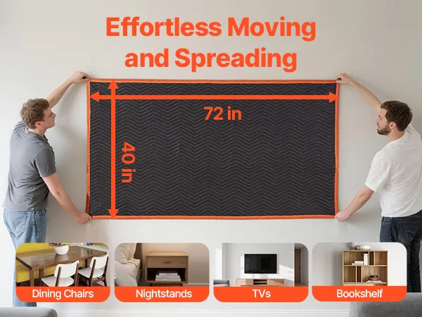 Idealny rozmiar: Każdy koc transportowy ma wymiary 1829 x 1016 mm i idealnie nadaje się do przykrycia krzeseł, stolików nocnych, małych urządzeń AGD oraz średnich i małych mebli. Ważąc zaledwie 1 kg każdy, koc jest lekki i może być z łatwością używany przez jedną osobę.