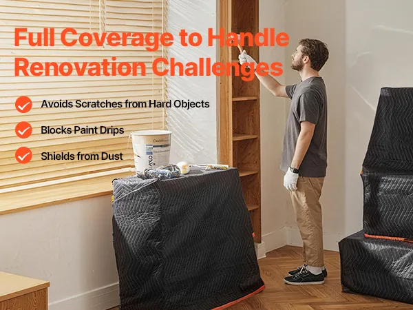 Ochrona tapicerki: Puszyste, bawełniane wypełnienie zapewnia doskonałą amortyzację oraz pochłania i rozprowadza wstrząsy podczas ruchu. Zmniejsza zarysowania i wgniecenia spowodowane uderzeniami lub bezpośrednim kontaktem, zapewniając ochronę mebli.