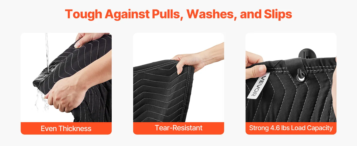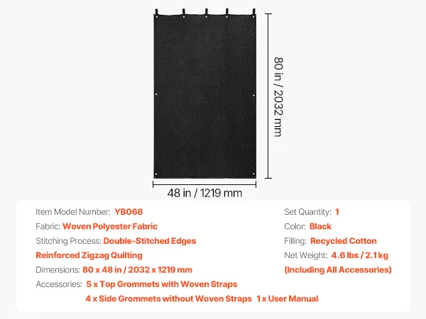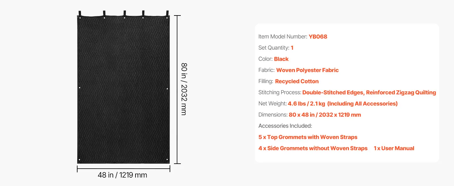 Duży zasięg: Każdy koc ma wymiary 2032 x 1219 mm (80 x 48 cali). Zapewnia szeroki zasięg z mniejszą liczbą szwów i idealnie nadaje się do zakrywania standardowych drzwi i okien lub dużych pomieszczeń, w których wymagana jest izolacja akustyczna, ochrona przed światłem i izolacja.