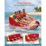 VEVOR Holowana dętka do łodzi, dętka do sportów wodnych dla 4 osób, ładowność do 308 kg, z 2 punktami holowniczymi, nylonową osłoną, wyściełanymi uchwytami i zaworem bezpieczeństwa, do jezior i rzek, kolor czerwony