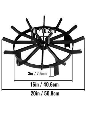 Całkowita średnica tego rusztu ogniowego wynosi 20 cali. Szprychy i nogi są wykonane z wytrzymałego pręta stalowego 3/4 ", pierścień podtrzymujący wykonany jest z pręta stalowego o grubości 3/8 x 1".