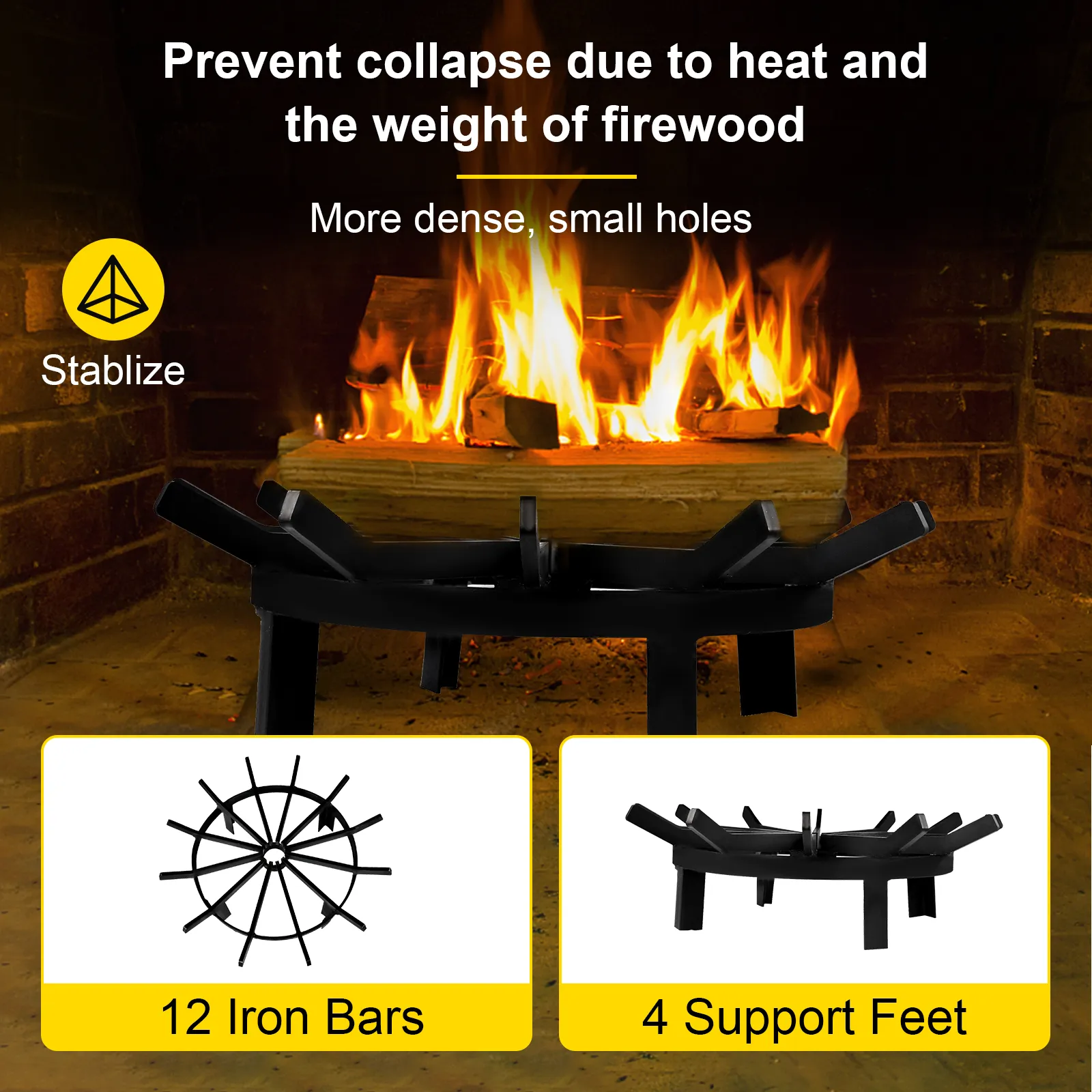Możesz użyć naszego stalowego rusztu do ogniska na swoim podwórku lub ognisku. Nasz stalowy ruszt paleniskowy jest zbudowany z wytrzymałych, grubych kwadratowych stalowych prętów i pierścienia oporowego dla zwiększenia trwałości. Innowacyjna, podwyższona konstrukcja podnosi kłody nad ziemię, poprawiając dopływ powietrza do ognia, a zakrzywione krawędzie pomagają utrzymać kłody stabilnie na łożu. Jest trwały i odporny na najtrudniejsze warunki.