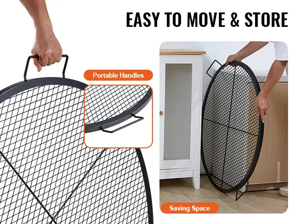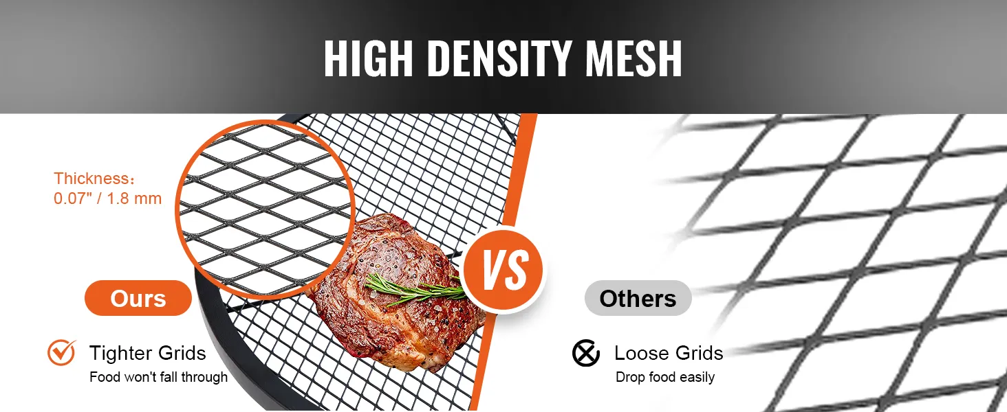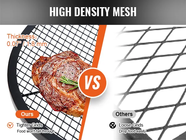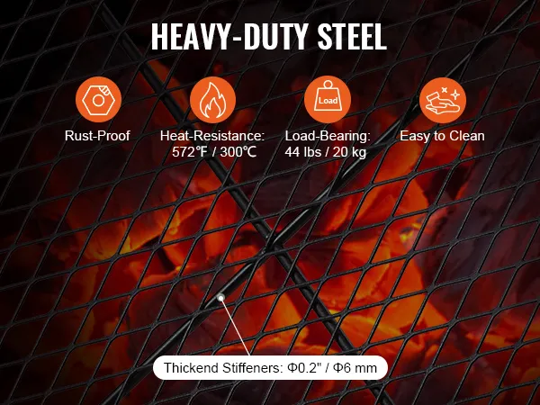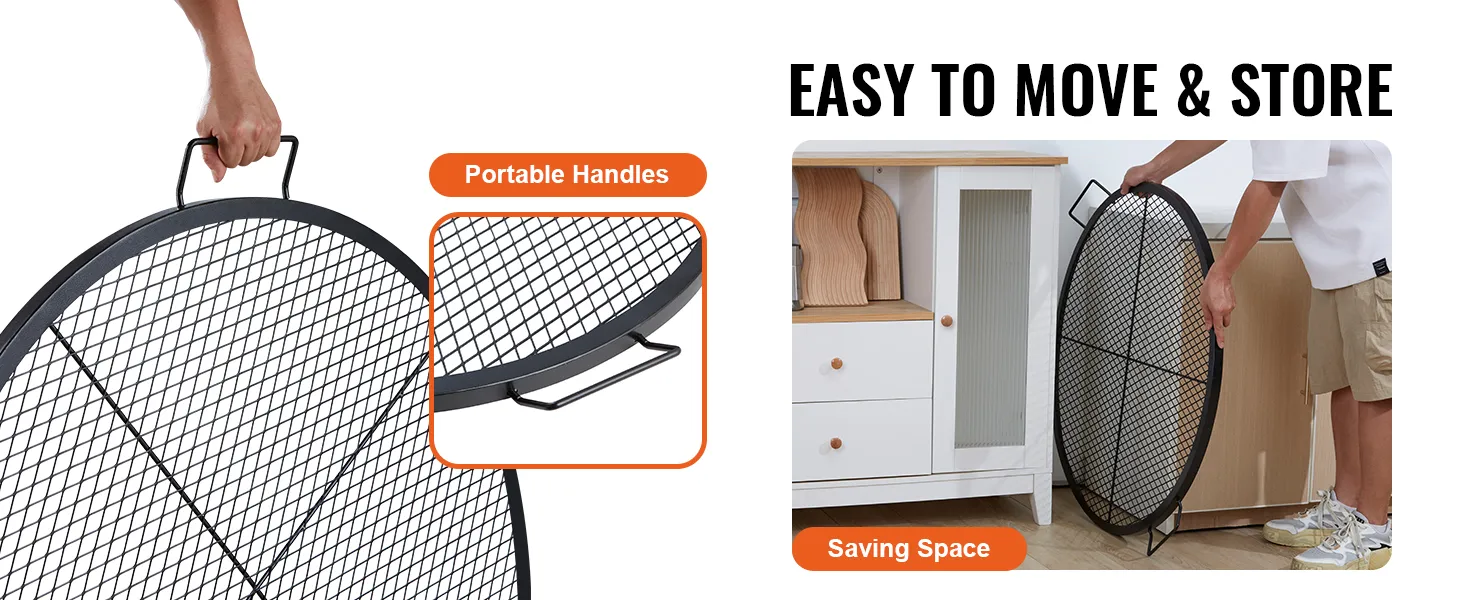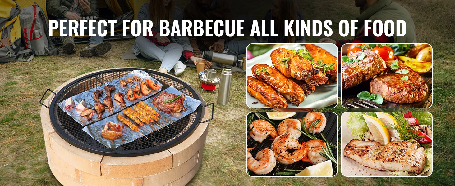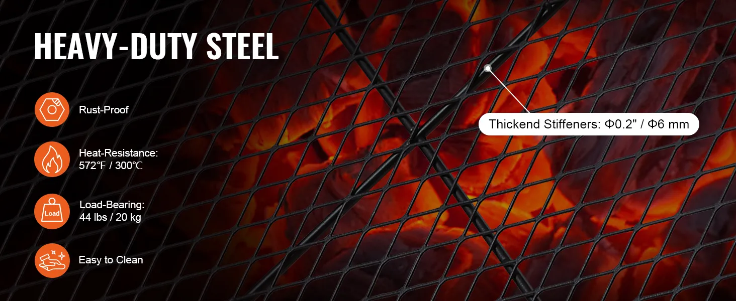 To najlepsza część każdej sesji gotowania na świeżym powietrzu. Ruszt do grilla VEVOR X-marks Fire Pit poprawia każde doświadczenie gotowania na świeżym powietrzu. Ma niezawodną wydajność, która zapewnia równomierne i bezpieczne gotowanie potraw. Mocna stalowa konstrukcja zapewnia zasady etykiety w celu uzyskania optymalnych powierzchni do gotowania. Uchwyty te pozostają chłodne nawet w gorącym ogniu, co zwiększa bezpieczeństwo. Ten ruszt sprawia, że gotowanie na świeżym powietrzu jest przyjemne i bezproblemowe. Powinieneś mieć wszystko!