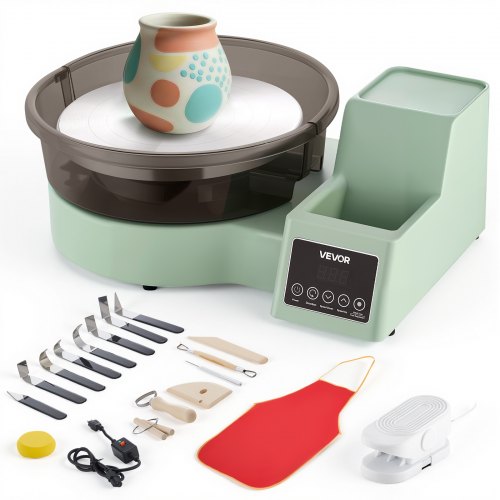 Koło garncarskie VEVOR, maszyna do formowania ceramiki, 28 cm, elektryczne koło garncarskie o mocy 350 W z pedałem i ekranem dotykowym LCD, ceramiczne koło z napędem bezpośrednim i narzędziami do formowania, do majsterkowania, białe