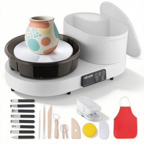 Koło garncarskie VEVOR, maszyna do formowania ceramiki o średnicy 25 cm, elektryczne koło garncarskie o mocy 350 W z pedałem nożnym i ekranem dotykowym LCD, ceramiczne koło z napędem bezpośrednim i narzędziami do formowania do majsterkowania, białe