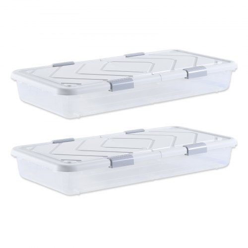 VEVOR Pojemnik pod łóżko, 2 sztuki, rolowany (101 x 51 x 15 cm), pojemnik pod łóżko z pokrywką i szarym zatrzaskiem, organizer do przechowywania ubrań, butów, koców, sypialni