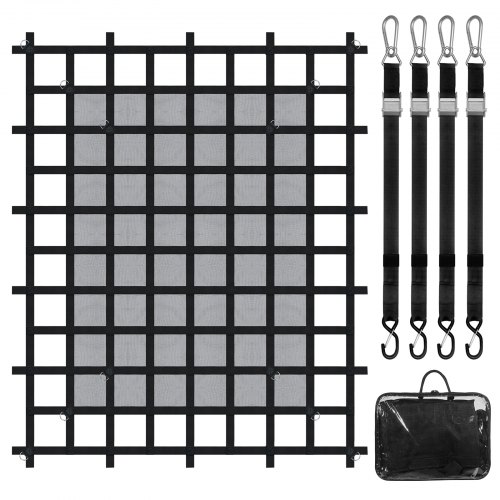 Siatka ładunkowa VEVOR, 183 x 145 cm, na skrzynię ładunkową samochodu ciężarowego, z 4 regulowanymi paskami z karabińczykami i gumowanymi haczykami, trwała, odpowiednia do samochodów dostawczych, jeepów, ciężarówek, SUV-ów i łodzi (czarna)