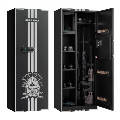 Szafka na broń VEVOR, szafka na broń długą, sejf na broń na 6-8 sztuk, sejf na broń z 3 przegrodami na amunicję i 2 regulowanymi półkami, szafka na broń z zamkiem na klucz i szyfr