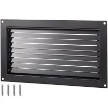 Kratka wentylacyjna VEVOR 406 x 203 mm, ocynkowana stalowa kratka osłonowa, kratka wylotowa żaluzjowa o grubości 0,75 mm, czarna kratka chroniąca przed warunkami atmosferycznymi do przestrzeni podpodłogowych, garaży i zabudów, tylko 1,8 kg