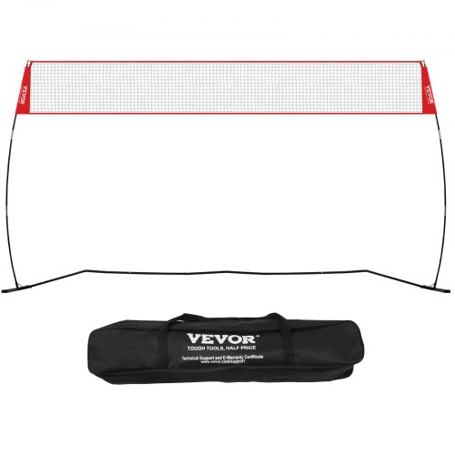 Siatka do siatkówki plażowej VEVOR z regulacją wysokości, 91,44 x 970 cm, przenośna, pomarańczowa, składana siatka do siatkówki z piłką, torbą transportową i rakietką do badmintona
