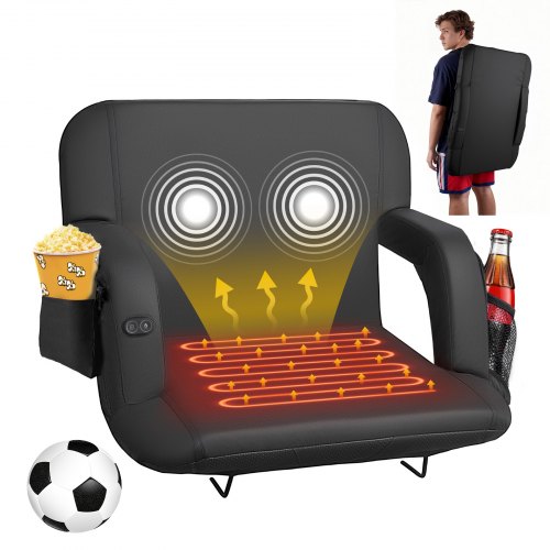 Fotel stadionowy VEVOR z podwójnym podgrzewaniem i oparciem, 3-poziomowe podgrzewane siedzisko na szerokich trybunach, składany, przenośny, wyściełany fotel z kieszenią na haczyk i uchwytem na kubek