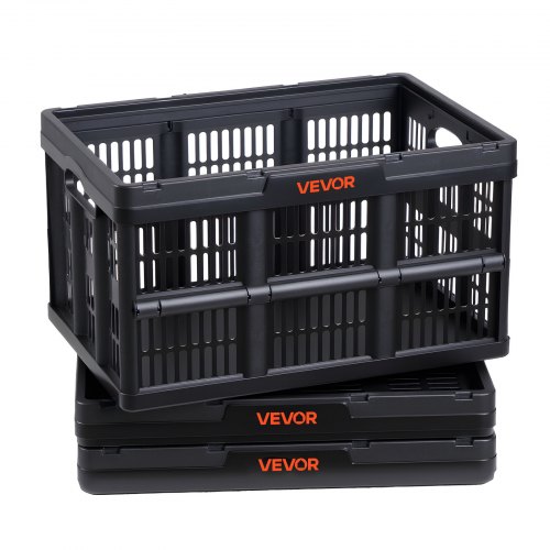VEVOR Składane pojemniki do przechowywania 45 l, 3 sztuki, składane plastikowe pojemniki do przechowywania, składane kosze do układania w stosy z uchwytami, nośność 15 kg na pojemnik, składana skrzynia, idealne do organizacji gospodarstwa domowego, kolor czarny