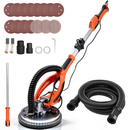 Szlifierka do płyt gipsowo-kartonowych VEVOR 950 W, szlifierka sufitowa z tarczą szlifierską 255 mm, szlifierka o długim zasięgu z prędkością 1000–2300 obr./min, dwuścienna dioda LED, wysuwana rękojeść, 15 tarcz szlifierskich, wąż do odsysania pyłu