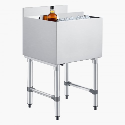 Pojemnik na lód VEVOR Catering 46,7 l, stal nierdzewna, podblatowy pojemnik na lód, 455 x 455 x 850 mm, z przesuwaną pokrywą, uchwytami na butelki i regulowanymi nóżkami, do barów, restauracji i pubów, certyfikat NSF