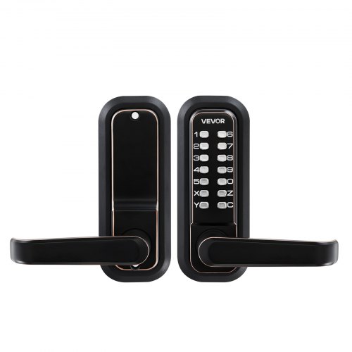 Mechaniczny zamek kodowy VEVOR z jednostronną klawiaturą (kod od 4 do 7 cyfr), bezkluczykowy zamek do drzwi z klamką i gałką oraz automatycznym ryglowaniem, do drzwi wejściowych i garaży, kolor czarny