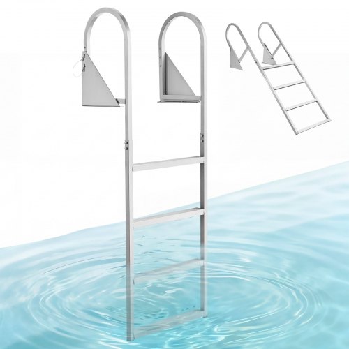 VEVOR Odłączana drabinka dokująca, drabinka do łodzi z 3 antypoślizgowymi stopniami, szerokimi pedałami i poręczą, udźwig 227 kg, aluminiowa drabinka basenowa, drabinka wejściowa do pomostów, basenów, jezior, łodzi, srebrna