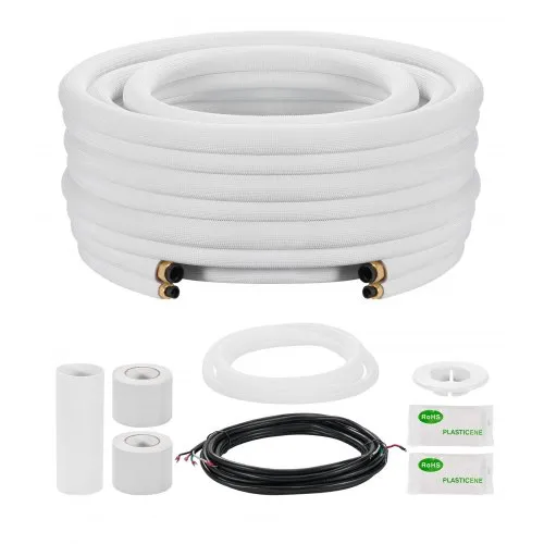 Zestaw kanałów VEVOR 7620 mm Mini Split Ducting Kit, średnica zewnętrzna 6,4 i 12,7 mm, rury miedziane i izolacja trójwarstwowa, do klimatyzatorów lub pomp ciepła i systemów HVAC z akcesoriami