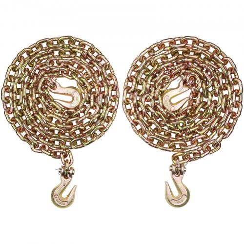 Zestaw 2 łańcuchów holowniczych VEVOR 9,53 mm x 6 m łańcuch do drewna o udźwigu 3220 kg łańcuch wiążący transportowy G80 łańcuch leśny ze stali łańcuch stalowy wytrzymały łańcuch do podnoszenia, załadunku, holowania, wiązania itp.