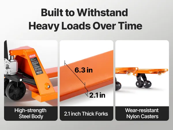 Solidna konstrukcja: Ten podnośnik paletowy jest wykonany z wysokowytrzymałej stali i wyposażony w widły o grubości 5 cm, co zapewnia mu trwałość. Z łatwością radzi sobie z dużymi ładunkami bez odkształceń, dzięki czemu nadaje się do codziennych, intensywnych zadań.