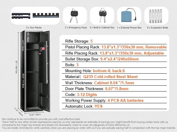 • SZYBKI DOSTĘP: Nasz sejf na broń został zaprojektowany z myślą o Twojej wygodzie. Długą podpórkę na broń można regulować i wyjmować, co zapewnia jeszcze większą elastyczność i wygodę. Automatyczne oświetlenie LED wewnątrz ułatwia odnalezienie broni nawet w złych warunkach oświetleniowych. Ponadto nasz sejf jest w pełni zmontowany i gotowy do użycia.