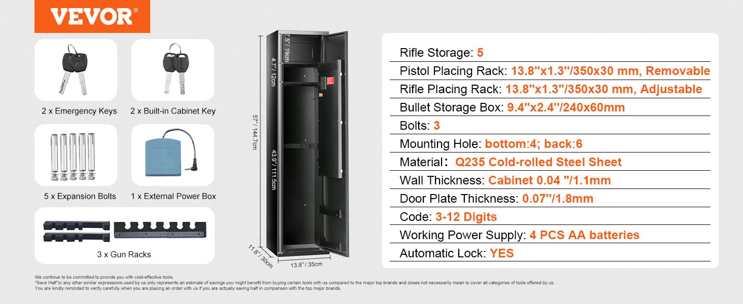 Chroń swoich bliskich i cenną broń palną za pomocą sejfu na broń VEVOR. Dzięki zaawansowanym funkcjom bezpieczeństwa i solidnej konstrukcji możesz mieć pewność, że Twoja broń jest zawsze w dobrych rękach.