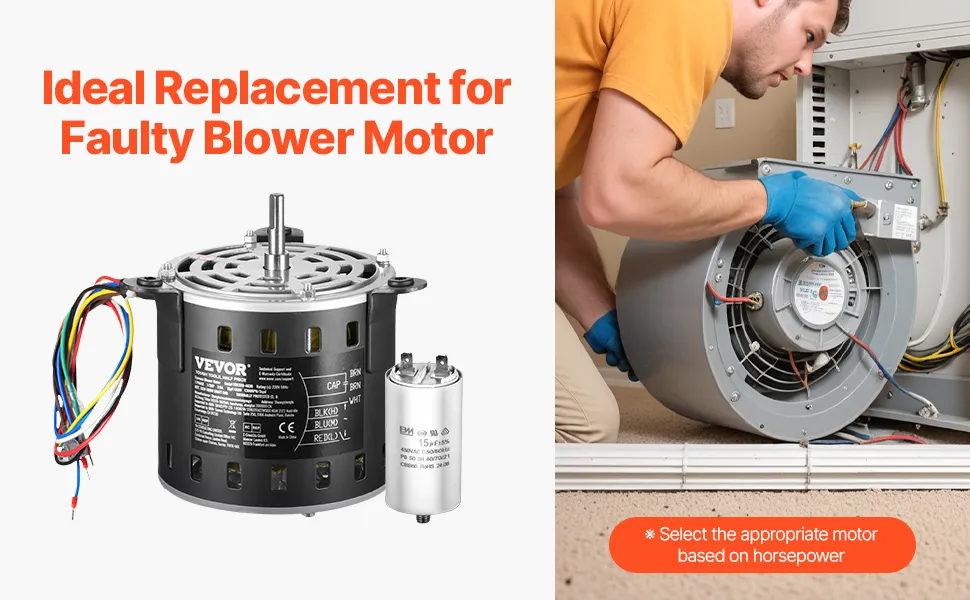 Idealny zamiennik: Silnik elektryczny wentylatora VEVOR jest przeznaczony do silników wentylatorów z napędem bezpośrednim stosowanych w systemach ogrzewania wewnętrznego, uzdatniania powietrza i pakowania w budynkach mieszkalnych i małych obiektach komercyjnych. Nadaje się do systemów ogrzewania, wentylacji i klimatyzacji kanałowej, zapewniając efektywną cyrkulację chłodnego lub ciepłego powietrza w pomieszczeniach.