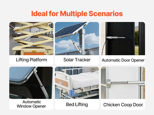 Wszechstronne zastosowania: Nasz siłownik liniowy można zintegrować z szeroką gamą aplikacji, od mebli i automatyki domowej po systemy przemysłowe, urządzenia mechaniczne, transport i wiele innych. Umożliwia automatyzację na każdym kroku.