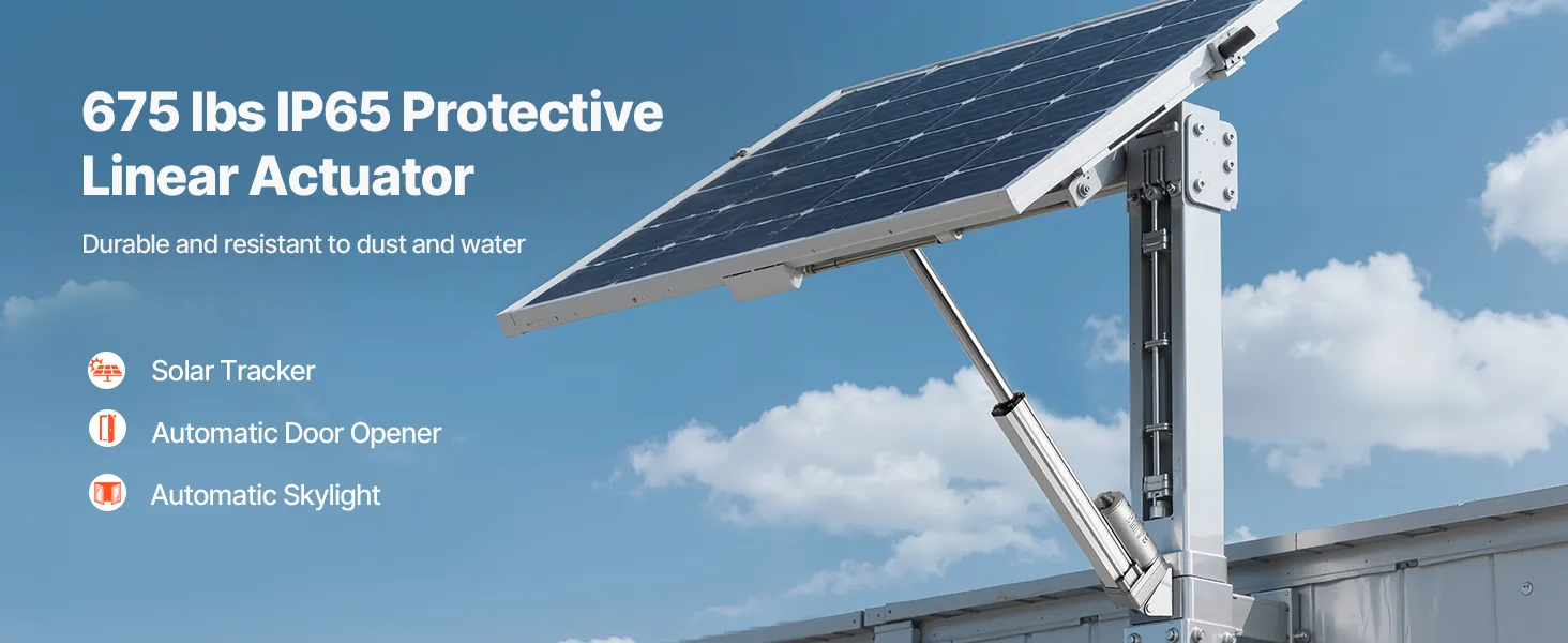 Doskonała ochrona IP65: Siłownik liniowy VEVOR 12 V jest pyłoszczelny i wodoodporny zgodnie ze standardem IP65, dzięki czemu nadaje się do użytku na zewnątrz, w takich zastosowaniach jak kosiarki do trawy, systemy śledzenia paneli słonecznych i systemy nawadniające. (Aby przedłużyć żywotność, nie zaleca się długotrwałego użytkowania na zewnątrz).