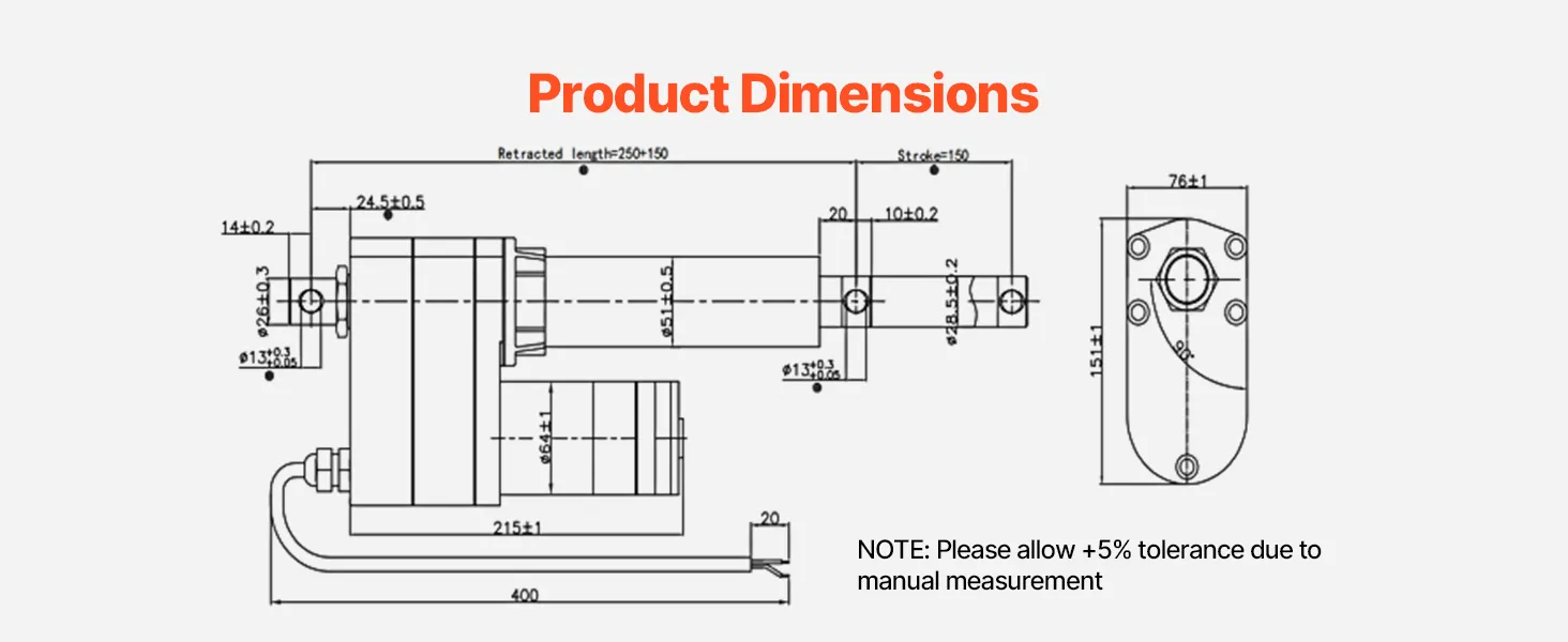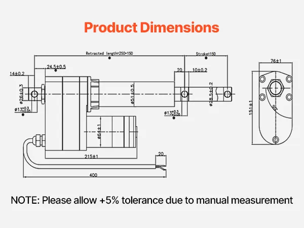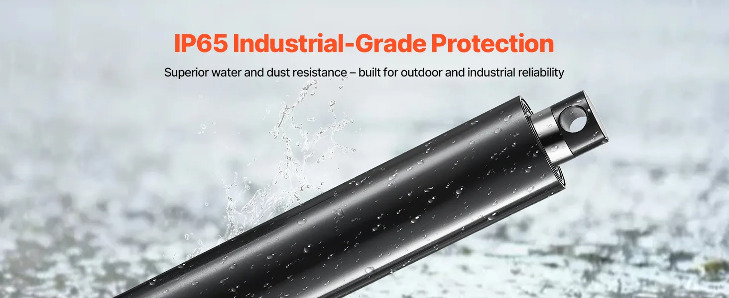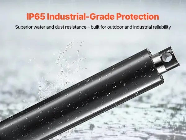 Dzięki imponującemu stopniowi ochrony IP65, nasz siłownik liniowy 12 V jest pyłoszczelny i wodoodporny, co gwarantuje niezawodną pracę zarówno wewnątrz, jak i na zewnątrz. (Uwaga: Aby przedłużyć żywotność, nie zaleca się długotrwałego użytkowania na zewnątrz).