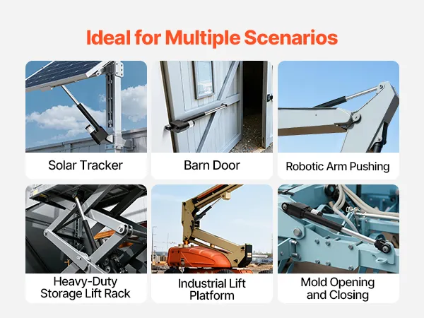Ultrawytrzymały siłownik liniowy VEVOR charakteryzuje się momentem obrotowym wynoszącym 9000 N (2023 funtów), doskonałą ochroną IP65 i płynnym ruchem z prędkością 5 mm/s (2 cale/s), zapewniając niezawodne wsparcie i wydajny ruch w automatyce przemysłowej, systemach podnoszenia o dużej wytrzymałości, sprzęcie mechanicznym, transporcie itp.