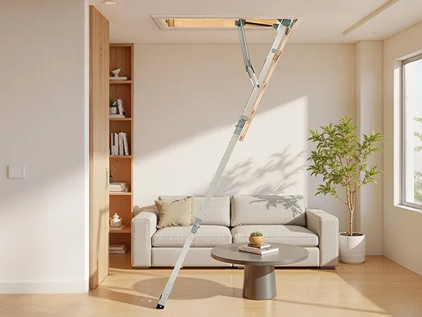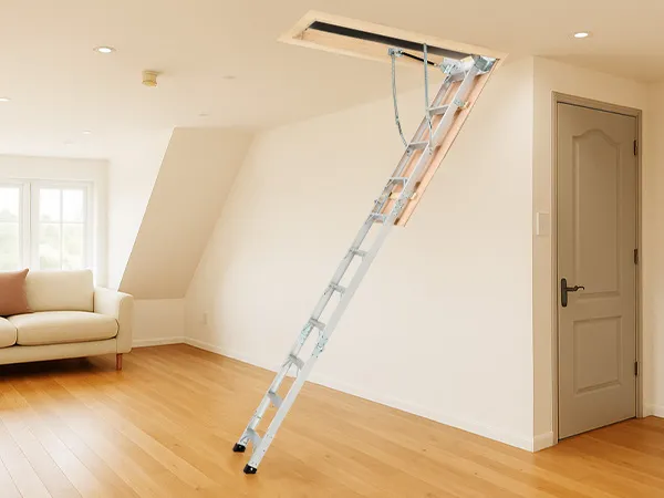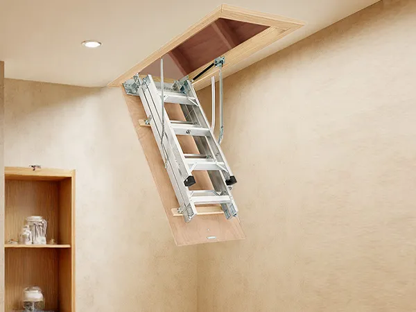 Drabina strychowa jest dostępna w dwóch wysokościach (3,9–3,1 m / 2,3–3,1 m), można ją skrócić piłą i składa się do rozmiaru 136 x 57 x 23,5 cm. Dwa hydrauliczne drążki zapewniają płynną pracę. Posiada drążek pociągowy, pierścień i magnetyczną klapę do łatwego, ukrytego składania. Posiada aluminiową obudowę i 8-centymetrowe stopnie, wytrzymuje 170 kg.