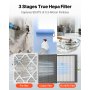 A perfectly matched filter size prevents contaminants from escaping. The three-stage filter system significantly improves filtration efficiency. This air purifier is a must-have for environments where the air is polluted.
