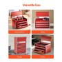 VEVOR Tool Box 218.4 x 118 x 120 mm, Tool Chest with 3 Drawers, Tool Case with EVA Inserts and PP Foot Pads, Robust Steel with Ball Bearing Opening and Powder Coating, Red