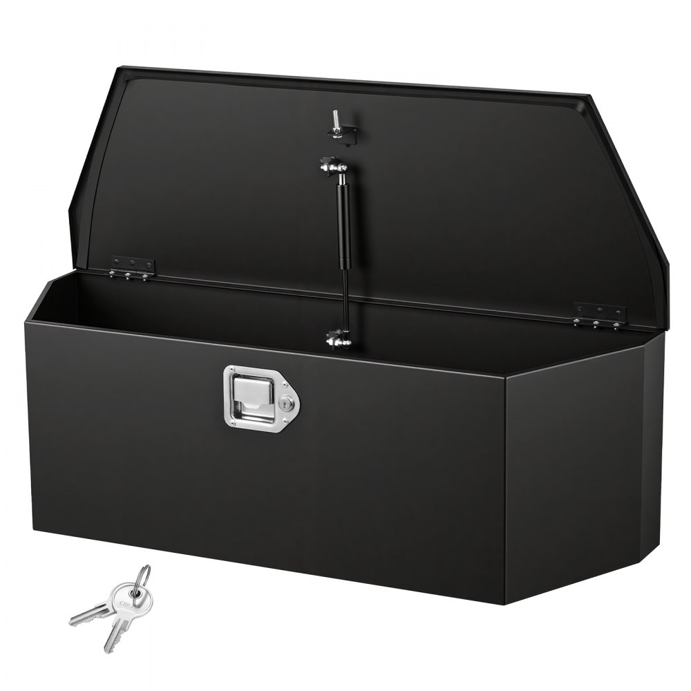 Skrzynia narzędziowa VEVOR Drawbar Box Truckbox 914 x 314 x 305 mm wykonana ze stali, nośność 50 kg, z zamkiem i kluczykami, do przyczep typu pickup, kamperów, SUV-ów, pojazdów terenowych, czarna