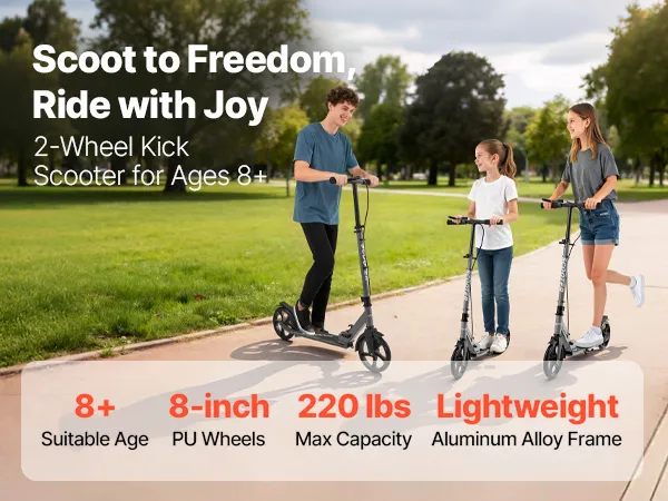Hulajnoga VEVOR (2 koła) dla dzieci od 8 lat, hulajnoga miejska, hulajnoga dziecięca, hulajnoga uliczna z regulowaną wysokością kierownicy, antypoślizgową platformą i hamulcem ręcznym, składana hulajnoga do 100 kg, szara