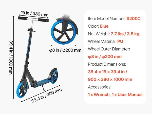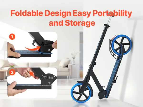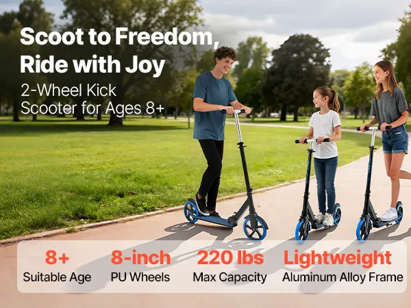 Hulajnoga VEVOR (2 koła) dla dzieci od 8 lat, hulajnoga miejska, hulajnoga dziecięca, hulajnoga uliczna z regulowaną wysokością kierownicy, antypoślizgową platformą i składaną ramą, hulajnoga do 100 kg, niebieska